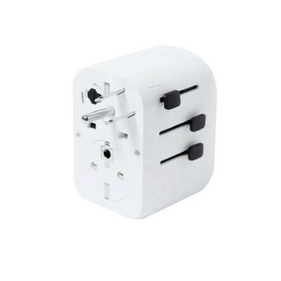 Adapter podróżny z wyjściem USB i USB-C,wtyczki z: USA, Europy, Azji, UK i Australii, produkt wykonany z ABS