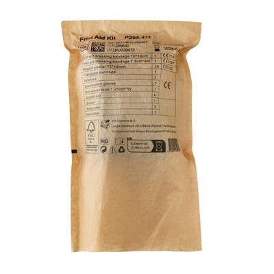 Apteczka 24 el., w pokrowcu z materiałów z recyklingu na zamek błyskawiczny, spełnia wymagania normy EN ISO 13485:2016, 93/42/EWG i UE (2017/745), całkowita zawartość materiałów z recyklingu obliczona na podstawie wagi całkowitej produktu: 46%
