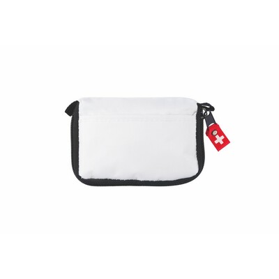 Apteczka w pokrowcu z przednią kieszonką i mocowaniem do paska, główna przegroda na zamek, 14 el., w tym: bandaż trójkątny, bandaż PTB, nożyczki, 4 plastry, 4 płatki nasączone alkoholem, 2 agrafki oraz taśma