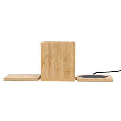 Bambusowa ładowarka bezprzewodowa 15W, pojemnik na przybory do pisania, podgrzewacz do kubka