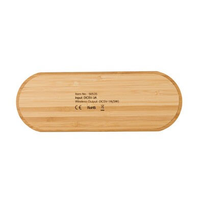 Bambusowa ładowarka bezprzewodowa 5W z dwoma miejscami do ładowania, działa z telefonami posiadającymi możliwość ładowania indukcyjnego, wejście: DC5V-3A, wyjście: 2x DC 5V/1A, kabel w komplecie