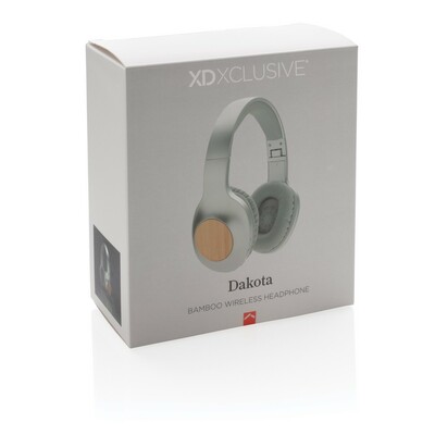 Słuchawki bezprzewodowe nauszne, BT 5.0, składane, bambusowe detale, wygodne i dopasowane poduszki, funkcja odbierania połączeń, wbudowany mikrofon, wbudowany akumulator o pojemności 300 mAh umożliwia odtwarzanie muzyki do 22 godzin, ponowne naładowanie w 2 godziny, zasięg do 10 m, kabel micro USB wykonany z TPE bez dodatku PVC w komplecie, ślad węglowy produktu: 1,75 kg CO2