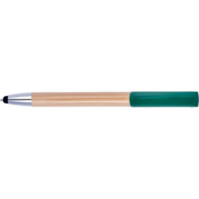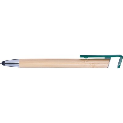 Długopis, touch pen, specjalny klip może służyć jako stojak na telefon, bambusowy trzon, kolorowe plastikowe elementy korpusu
