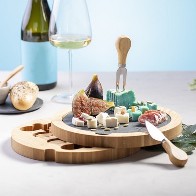 Bambusowy zestaw do sera, 4 el., deska do krojenia wykonana z łupka, wyciągany element z łupka dla łatwiejszego czyszczenia