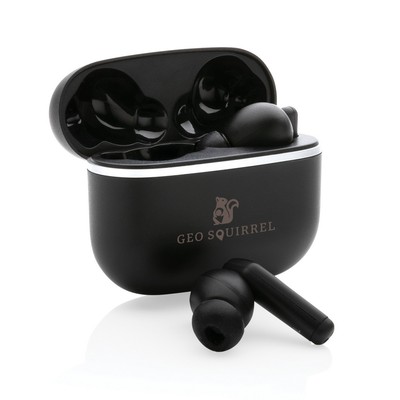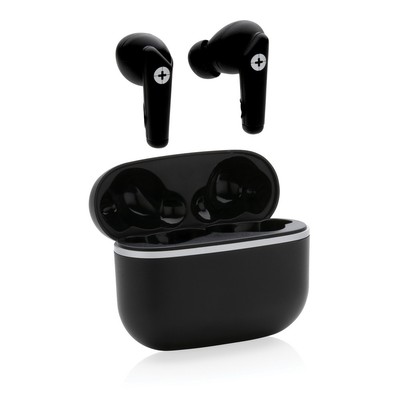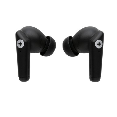 Bezprzewodowe słuchawki douszne TWS 2.0 (True Wireless Stereo), BT 5.3, wykonane z ABS, zawartość materiałów z recyklingu obliczona na podstawie wagi całkowitej przedmiotu: 59%, etui 400 mAh pełniące funkcję stacji ładującej w komplecie, akumulator słuchawek 40 mAh umożliwia odtwarzanie muzyki do 4 godzin, ponowne naładowanie za pomocą etui w 1.5 godziny, zasięg do 10 metrów, w pudełku z certyfikatem FSC® mix, kabel wykonany z TPE bez dodatku PVC w komplecie, ślad węglowy produktu: 0,62 kg CO2