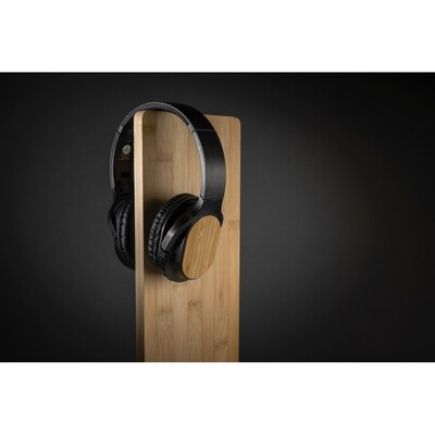 Nauszne słuchawki bezprzewodowe BT 5.1, wykonane z materiałów z recyklingu z certyfikatem RCS, całkowita zawartość materiałów z recyklingu 66% obliczona na podstawie wagi całkowitej, detale wykonane z bambusa z certyfikatem FSC®, wbudowany mikrofon, funkcja odbierania połączeń, wbudowany akumulator o pojemności 200 mAh umożliwia odtwarzanie muzyki do 5 godzin, ponowne ładowanie w 2 godziny, kabel z TPE z recyklingu w komplecie, w kraftowym pudełku z certyfikatem FSC® mix, nie zawiera PVC, ślad węglowy produktu: 0,88 kg CO2