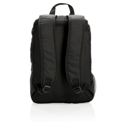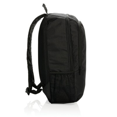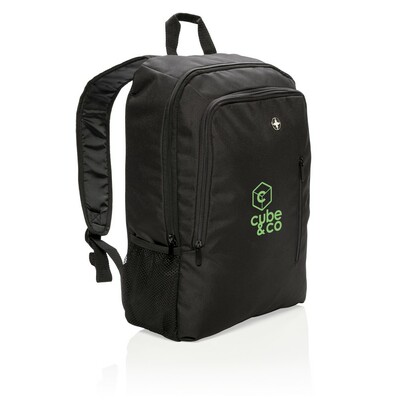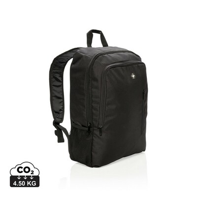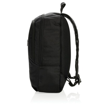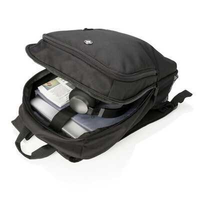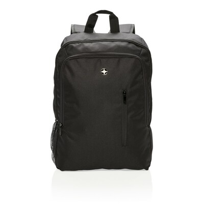 Biznesowy plecak na laptopa 17″, wykonany z poliestru 600D i 1680D, przestronna przegroda główna, druga przegroda na wszystkie niezbędne akcesoria, zapinana na zamek kieszeń na akcesoria z przodu, siateczkowa kieszeń boczna, nie zawiera PVC, ślad węglowy produktu: 4,5 kg CO2