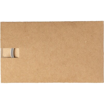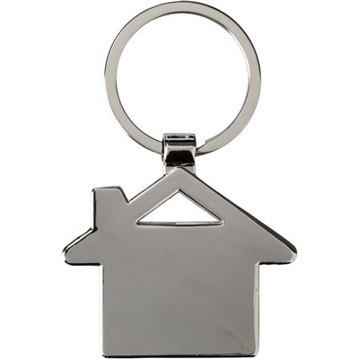 Brelok „domek”, zapakowany w kartonik kraftowy, produkt wykonany z bambusa z metalowymi elementami
