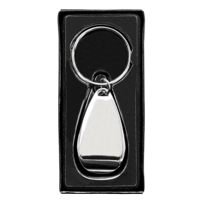 Otwieracz do butelek z brelokiem umożliwiającym przyczepienie do kluczy, czarne pudełko podarunkowe w komplecie, produkt wykonany z metalu