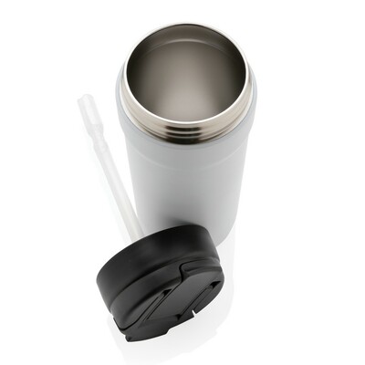 Butelka sportowa 670 ml, dwufunkcyjne wieczko z rozkładaną słomką i standardowym ustnikiem, wykonana z materiałów pochodzących z recyklingu z certyfikatem RCS (Recycled Claim Standard) który gwarantuje, że wykorzystane materiały pochodzą z recyklingu, całkowita zawartość materiału z recyklingu obliczona w oparciu o wagę całkowitą przedmiotu: 78%, w pudełku z papieru kraftowego z certyfikatem FSC® (Forest Stewardship Council), ślad węglowy produktu: 1,75 kg CO2