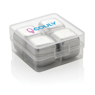 Zestaw chłodzących kostek do napojów 4 el., pozwalają na schłodzenie napoju bez jego rozcieńczania, wykonane ze stali nierdzewnej, kostki należy umieścić na 3 godziny w zamrażarce przed użyciem, w pudełku, ślad węglowy produktu: 1,57 kg CO2