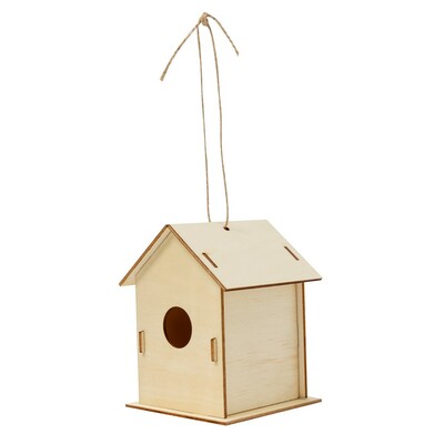Domek dla ptaków do malowania, w komplecie 6 farbek i pędzelek, produkt wykonany z drewna
