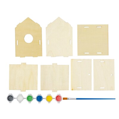 Home > Sklep > Domek dla ptaków do malowania, 6 farbek i pędzelek