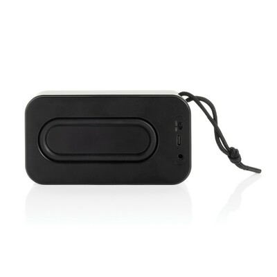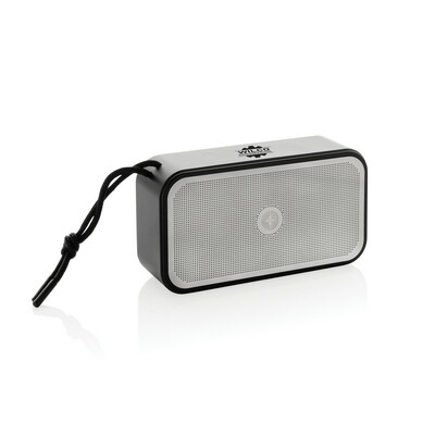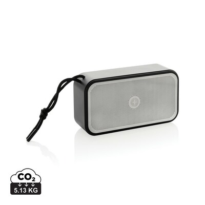 Głośnik bezprzewodowy 10W, BT 5.3, wodoodporny IPX4, posiada wbudowany głośnik niskotonowy, wbudowany akumulator o pojemności 1200 mAh pozwala na odtwarzanie do 5 godzin na średnim poziomie głośności, wykonany z aluminium z recyklingu, całkowita zawartość materiałów z recyklingu obliczona na podstawie wagi całkowitej przedmiotu: 40%