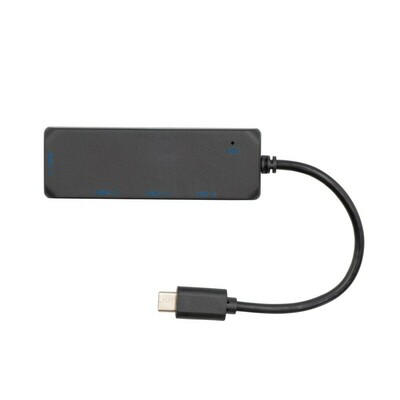 Hub z 2 portami USB 2.0, portem USB 3.0 (transfer danych kompatybilny z Android oraz iOS) i portem USB-C (transfer danych kompatybilny z iOS), obudowa wykonana z RABS, zintegrowany kabel z końcówką USB-C