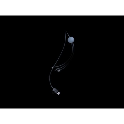 Kabel do ładowania, końcówki: USB, 2 x USB C, micro USB, iOS, obudowa wykonana z ABS z recyklingu z certyfikatem RCS (Recycled Claim Standard) który gwarantuje, że wykorzystane materiały pochodzą z recyklingu, kabel z TPE z recyklingu, długość 120 cm, w pudełku z certyfikatem FSC® mix, nie zawiera PVC, ślad węglowy produktu: 0,21 kg CO2