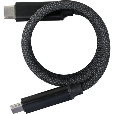 Kabel do przesyłania danych i ładowania z końcówkami 2 x USB-C, szybkość transmisji danych 240 Mb/s, dzięki magnesowi wewnątrz kabel jest automatycznie zwijany, moc wyjściowa ładowania 60W, zapakowany w brązowy kartonik, produkt wykonany z nylonu i aluminium