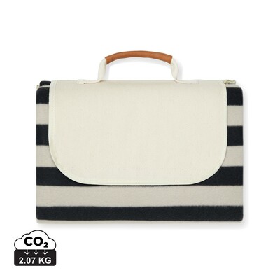 Koc piknikowy VINGA Alba RPET z miękkiego polaru z bawełnianym płótnem i detalami z PU, spód wykonany jest z materiału PEVA, który nie przepuszcza wody