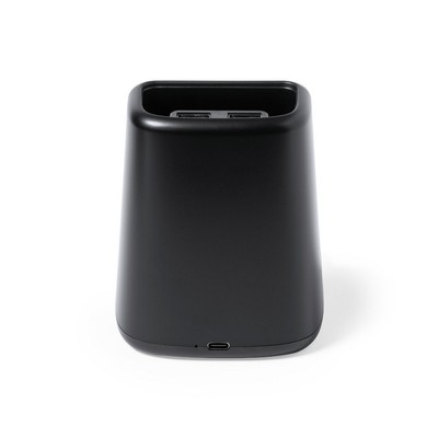 Ładowarka bezprzewodowa 15W, działa z telefonami posiadającymi możliwość ładowania indukcyjnego, 2 wyjścia USB 5V/2A, pojemnik na przybory do pisania, stojak na telefon, grawer ukazuje podświetlaną powierzchnię, antypoślizgowy spód, wejście USB typu C 5-12V/3-1.5A, kabel USB typu C w komplecie