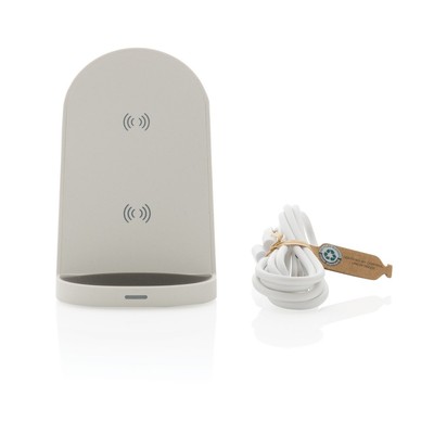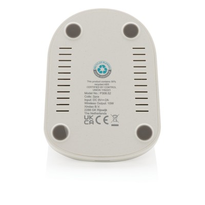 Ładowarka bezprzewodowa 15W, posiada wbudowane 2 cewki ładujące, ładować można zarówno w pozycji pionowej jak i horyzontalnej, obudowa wykonana z materiałów pochodzących z recyklingu, posiadają certyfikat RCS (Recycled Claim Standard), który jest stosowany gdy produkt jest wykonany częściowo lub w całości z materiałów pochodzących z recyklingu, całkowita zawartość materiałów z recyklingu to 56%, obliczona na podstawie wagi całkowitej przedmiotu, bezprzewodowe ładowanie jest kompatybilne ze wszystkimi urządzeniami posiadającymi możliwość ładowania indukcyjnego, wejście 12V/1.67A, wyjście bezprzewodowe 9V/1.5A, 15W, w komplecie kabel 150 cm wykonany z TPE z recyklingu, w opakowaniu z certyfikatem FSC mix, nie zawiera PVC, ślad węglowy produktu: 1,35 kg CO2