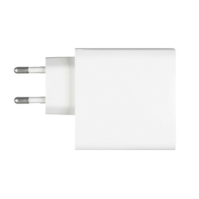 Ładowarka ścienna z wyjściem USB oraz 2 wyjściami USB-C, moc całkowita do 65W (USB-C1: max. 45W, USB-C2: max. 20W, USB-A: max 18W), wejście 100-240V, wyjście USB-C 5-15V/3A, wyjście USB 5-12V/1.5-3A, do użytku wewnątrz pomieszczeń
