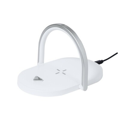 Lampka na biurko, ładowarka bezprzewodowa 15W, działa z urządzeniami posiadającymi możliwość ładowania indukcyjnego, 14 diod LED, 3 trybami świetlnymi, regulowaną jasnością, wejście/wyjście USB 5-9V/2A, kabel USB-C w komplecie, produkt wykonany z ABS