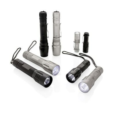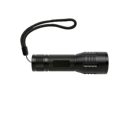 Latarka CREE 3W o bardzo jasnym świetle, wykonana z trwałego aluminium, 100 lumenów, czas pracy do 6 godzin, baterie w komplecie, ślad węglowy produktu: 1,48 kg CO2