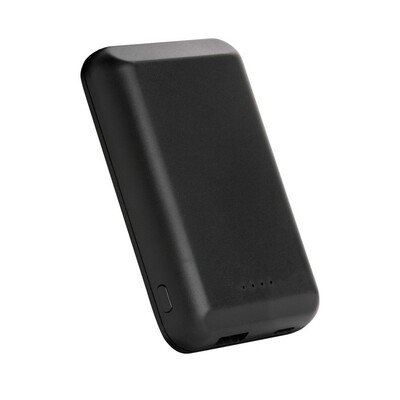Magnetyczny, bezprzewodowy power bank 5000 mAh, ładowarka bezprzewodowa 5W, wyjście USB do ładowania za pomocą kabla, 11 wbudowanych magnesów N52H odpornych na ciepło, dzięki idealnemu rozłożeniu magnesów power bank jest kompatybilny z telefonem iPhone 12, w przypadku urządzeń Android działa jak standardowa ładowarka bezprzewodowa, działa z telefonami posiadającymi możliwość ładowania indukcyjnego, wejście 5V/1.5A, wyjście 5V/1A, 100 cm kabel micro USB z TPE w komplecie, nie zawiera PVC, ślad węglowy produktu: 3,19 kg CO2