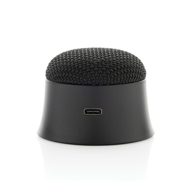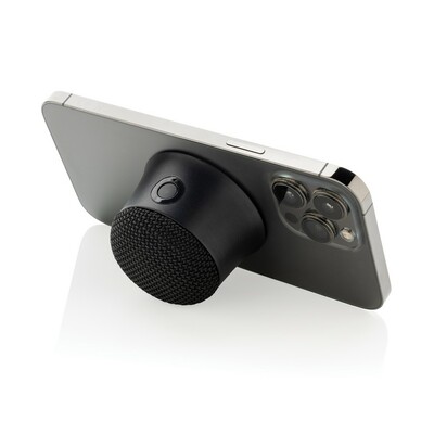 Głośnik bezprzewodowy 5W, BT 5.0, magnes w podstawie umożliwia przyczepienie telefonu do metalicznych powierzchni jak telefon, czy lodówka, wykonany z ABS z recyklingu z certyfikatem RCS, wbudowany akumulator o pojemności 650 mAh pozwala na odtwarzanie muzyki do 5 godzin, ponowne ładowanie w 2 godziny, kabel z TPE z recyklingu w komplecie, całkowita zawartość materiałów z recyklingu obliczona w oparciu o wagę całkowitą przedmiotu: 22%, w pudełku z certyfikatem FSC® mix