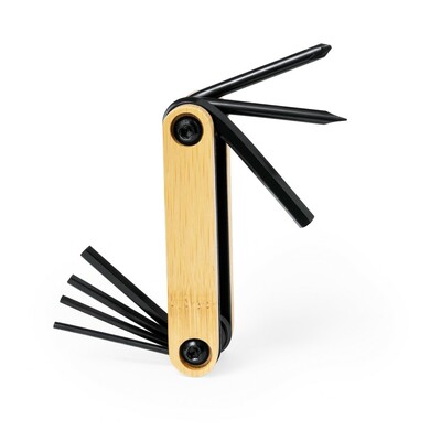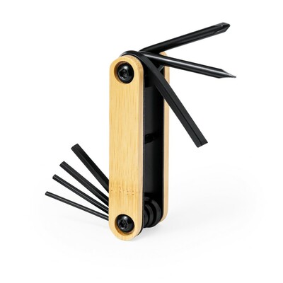 Narzędzie wielofunkcyjne, 7 funkcji, klucze imbusowe, śrubokręty, bambusowy uchwyt