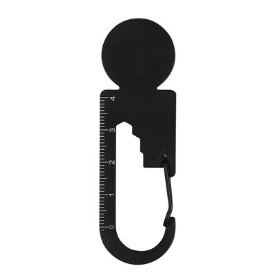 Narzędzie wielofunkcyjne z karabińczykiem umożliwiającym przypinanie, 8 funkcji, linijka, klucz płaski, żeton do wózka na zakupy, produkt wykonany ze stali nierdzewnej