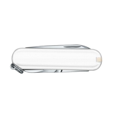 Narzędzie wielofunkcyjne Victorinox Classic SD z 7 funkcjami: wykałaczką, nożyczkami, pęsetą, pilnikiem do paznokci, śrubokrętem (2,5 mm), brelokiem do kluczy i małym ostrzem, zapakowane w pudełko upominkowe, produkt wykonany z ABS i metalu