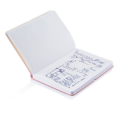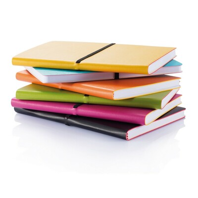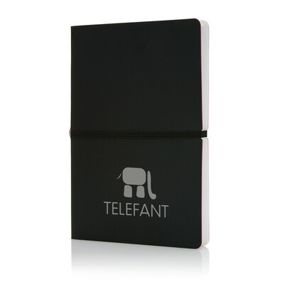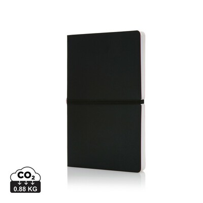Notatnik A5 (96 kartek 80 g/m2 w linie), miękka okładka z PU, elastyczna opaska do zamykania, ślad węglowy produktu: 0,88 kg CO2
