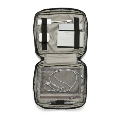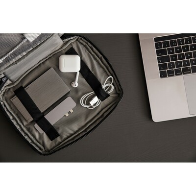 Organizer, posiada miejsca na power bank, słuchawki, notatnik, długopis, kable, z karabińczykiem (tylko do użytku promocyjnego)