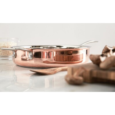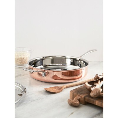 Patelnia z pokrywką, wykonana z miedzi, aluminium i stali nierdzewnej, uchwyt ze stali nierdzewnej, nadaje się do wszystkich rodzajów kuchenek, w tym indukcyjnych