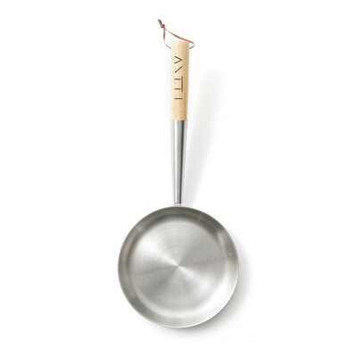 Patelnia, idealnie nadaje się do gotowania na wolnym ogniu, wykonana ze stali nierdzewnej, drewniany uchwyt