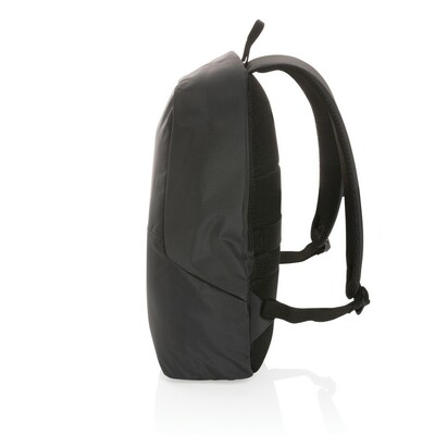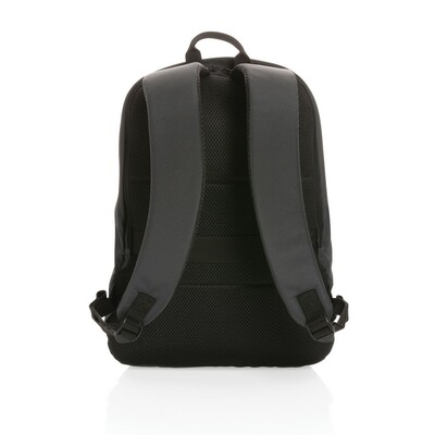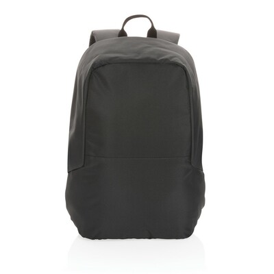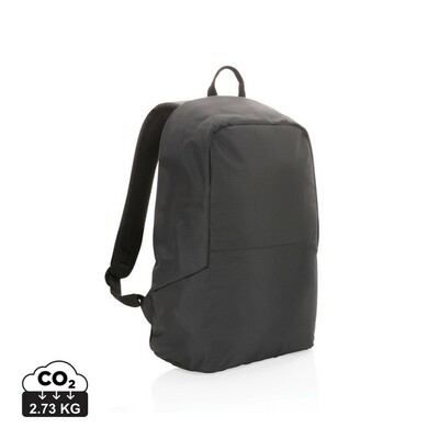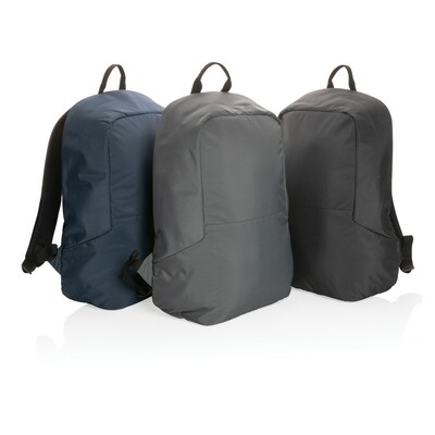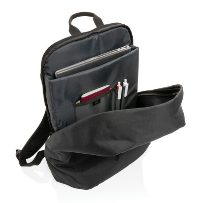 Plecak na laptopa 15,6″ chroniący przed kieszonkowcami, przestronna przegroda główna, wewnątrz kieszeń z ochroną RFID, pasek do zamocowania na walizce, wykonany z poliestrów pochodzących z recyklingu do produkcji których zostało ponownie wykorzystanych 19,9 butelek PET o pojemności 0,5 l, dzięki zastosowaniu technologii śledzącej AWARE™ wykorzystane włókna są identyfikowalne z pochodzenia, 2% wpływów z każdego sprzedanego produktu jest przekazywane na rzecz Water.org