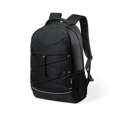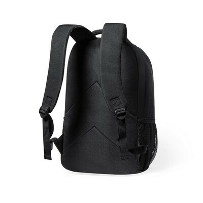 Plecak wykonany z RPET, z przegrodą na laptopa 15″ i przegrodą na tablet 12″, miękki tył i regulowane paski na ramię, 2 boczne kieszenie siateczkowe