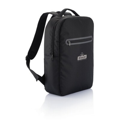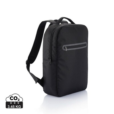 Plecak na laptopa 15,6″, wykonany z poliestru 300D, 1 przegroda główna z kieszenią na tablet oraz organizer, nie zawiera PVC, ślad węglowy produktu: 3,45 kg CO2