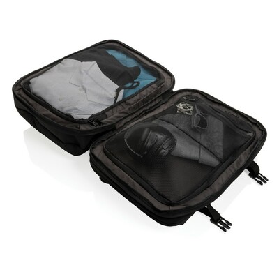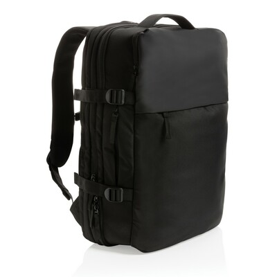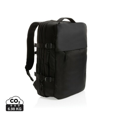 Plecak na laptopa 15,6″, przestronna przegroda główna z przegrodą szybkiego dostępu do laptopa, dzięki rozszerzalnej przegrodzie głównej pojemność może być zwiększona o ponad 35%, paski ściągające z boku, wewnątrz kieszenie na akcesoria, pasek do zamocowania na walizce, wykonany z poliestrów pochodzących z recyklingu do produkcji których zostało ponownie wykorzystanych 38,4 butelek PET o pojemności 0,5 l, dzięki zastosowaniu technologii śledzącej AWARE™ wykorzystane włókna są identyfikowalne z pochodzenia, 2% wpływów z każdego sprzedanego produktu jest przekazywane na rzecz Water.org, nie zawiera PVC
