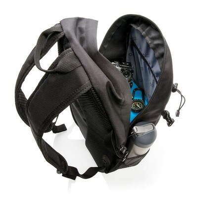 Plecak sportowy, wykonany z poliestru 600D i 1680D, główna przegroda, boczne kieszenie siateczkowe, wygodny dla pleców tylny panel, nie zawiera PVC, ślad węglowy produktu: 4,16 kg CO2