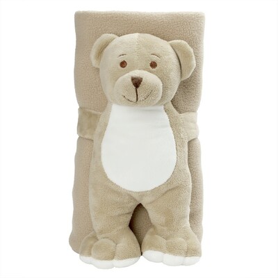 Beżowy miś z kocem (po rozłożeniu 100 x 80 cm)