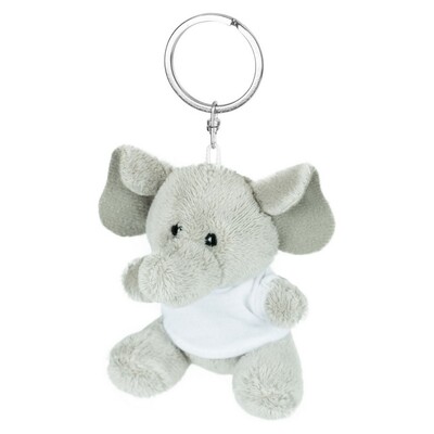 Brelok „słoń” z białą koszulką pod nadruk, nieoznakowana koszulka z poliestru jest pakowana oddzielnie, produkt wykonany z pluszu