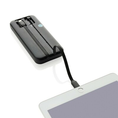 Power bank 10000 mAh ze zintegrowanymi kablami Turbopack