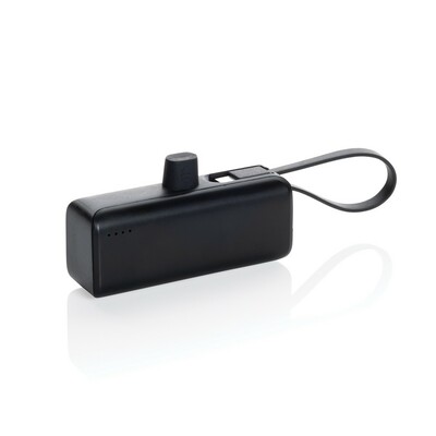 Power bank 3000 mAh, zintegrowany kabel USB C (wejście/wyjście), wyjście USB typu C, wykonany z ABS i TPE z recyklingu z certyfikatem RCS, wejście 5V/2.1A, wyjście 5V/2.4A, całkowita zawartość materiałów z recyklingu obliczona w oparciu o wagę całkowitą przedmiotu: 19%, w pudełku z certyfikatem FSC®
