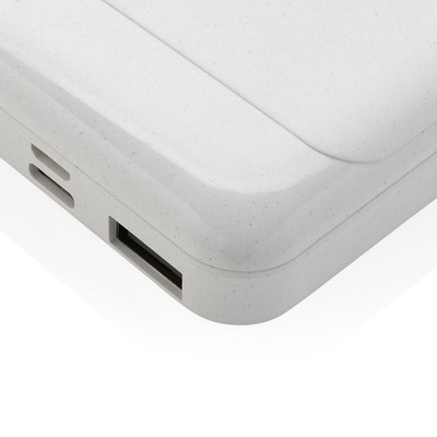 Power bank 5000 mAh, 4 diody wskazujące poziom naładowania, wykonany z ABS z recyklingu z certyfikatem RCS, całkowita zawartość materiałów z recyklingu obliczona na podstawie wagi całkowitej przedmiotu: 22%, wbudowany akumulator litowo polimerowy o dużej gęstości, wejście micro USB 5V/2A, wejście typu C 5V/2.4A, wyjście USB 5V/2.4A, wyjście typu C 5V/2A, w komplecie kabel z TPE z recyklingu z certyfikatem RCS, w pudełku z papieru kraftowego z certyfikatem FSC®, ślad węglowy produktu: 2,33 kg CO2