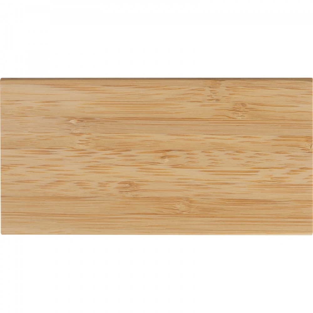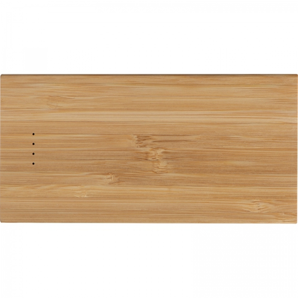 Power bank w bambusowej obudowie, o mocy 8 000 mAh, kabel USB w zestawie. Dane techniczne: Output: USB A x2 Input: Mikro USB, Typ C Input: DC 5V, 2000 mAh (max.) Output: DC 5.2V 2000 mAh (max.) Capacity: 8000 mAh (29.6WH) Inne: Kabel posiada złącza USB A i mikro USB. Kabel około 30 cm