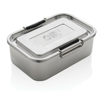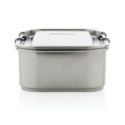 Pudełko śniadaniowe 800 ml, lunchbox, zamykane na 2 zatrzaski, solidne i szczelne, wykonane w 95% ze stali nierdzewnej z recyklingu, wykorzystane materiały posiadają certyfikat GRS (Global Recycled Standard) który gwarantuje, że wykorzystane materiały pochodzą z recyklingu, zawartość materiału z recyklingu jest obliczana w oparciu o wagę całkowitą przedmiotu, wyłącznie do zimnych potraw, nie należy używać w kuchence mikrofalowej i myć w zmywarce, w opakowaniu z papieru kraftowego z certyfikatem FSC® (Forest Stewardship Council), ślad węglowy produktu: 1,33 kg CO2
