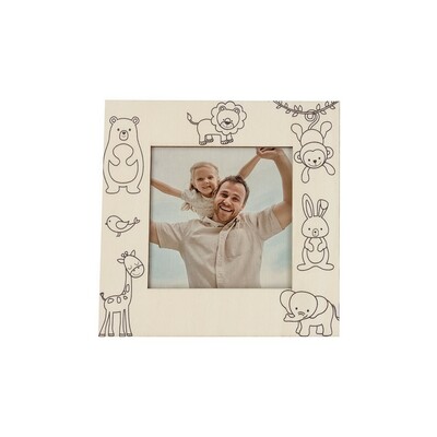 Ramka do zdjęć do kolorowania, 5 kredek, ramka o wymiarach 7,5 x 7,5 cm, produkt wykonany z drewna