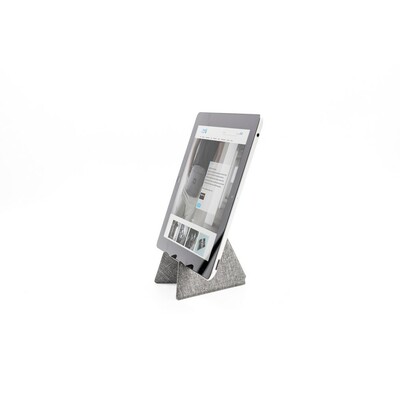 Stojak na telefon BrandCharger Ascend Mini, magnetyczne zamknięcie ułatwiające przenoszenie, mieści smartfony i tablety o przekątnej do 13″, zawiera organizer na kable pomagający zachować porządek, produkt wykonany z RPET, poliestru i kartonu